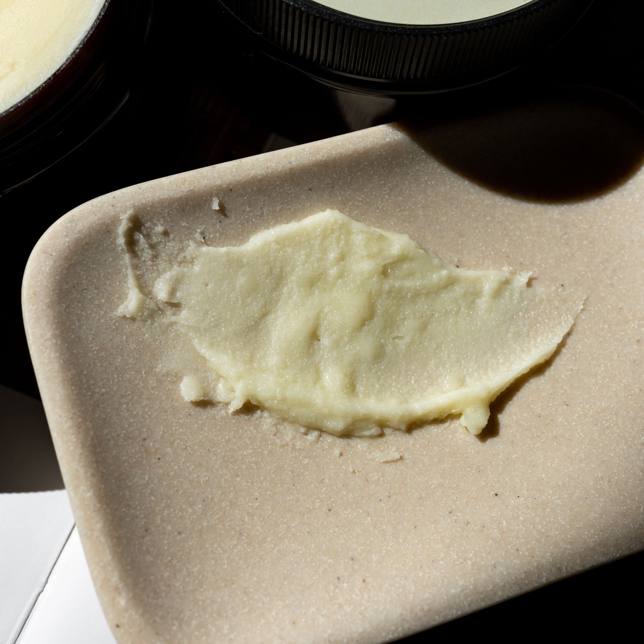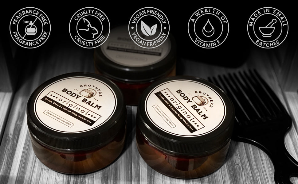 We only use 4 ingredients, striking the perfect balance between being heavier than lotion yet lighter than Shea Butter alone. It goes on smooth without and sticky or tacky residue.